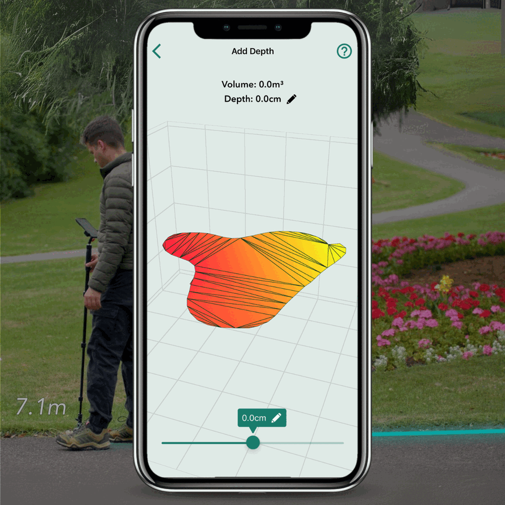 The 'Add Depth' tool is specifically designed for calculating the volume of a material, such as mulch or aggregate, based on your measured surface area and desired depth of coverage.